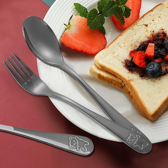 - ✅Cute engraved bear: the end of each kids utensils feature a cute bear pattern, the lovely design can easily find favor with children in different ages