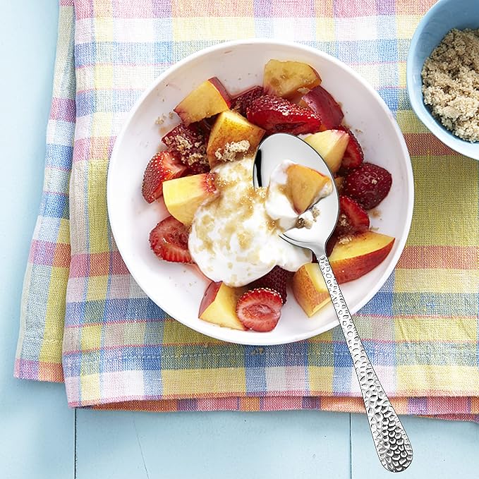 E-far Stainless Steel Kids Spoons, 6-Piece Toddlers Spoons Safe for Preschooler/Children, Hammered Adult look & Small Size, Rust Free & Dishwasher Safe