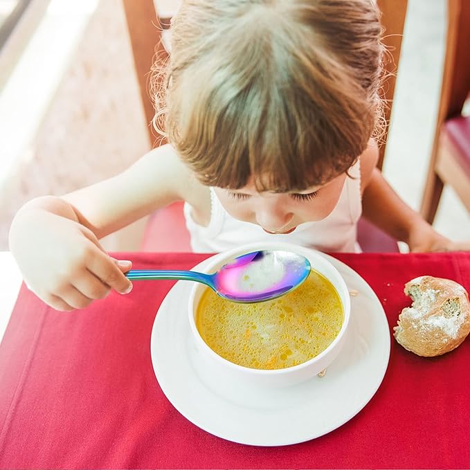 LIANYU 9-Piece Rainbow Toddler Spoons, Kids Baby Spoons Self Feeding, Stainless Steel Children Silverware Set for 2-10 Year Old, Preschooler Cutlery Flatware Set for Home School, Dishwasher Safe