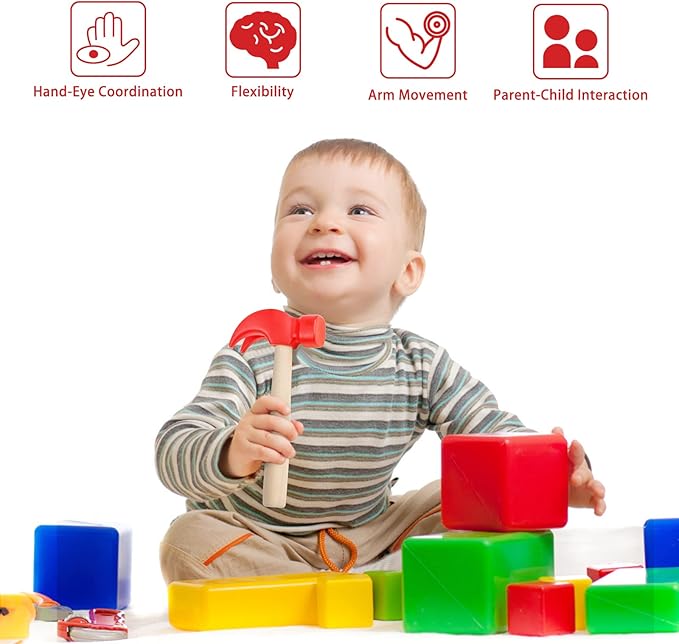 - Improve Kids Skills: The hammer toy can improve your babys gripping ability, hand-eye coordination, maneuverability, dexterity and arm movement ability.