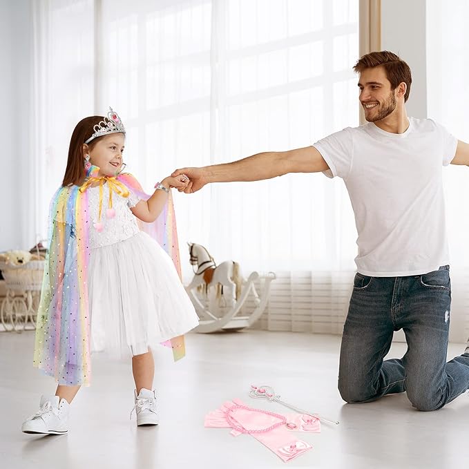 - Wonderful Gift: This lovely role play cape set perfect for play princess dress up. It's a creative charming princess costumes accessories, wonderful useful gifts for her. Your little princess would be happy to scream when opened the gift bag, she would be a pretty princess.