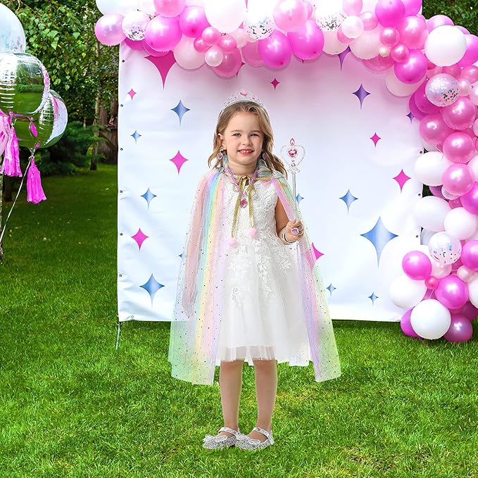 - Perfect Addition to Little Princess: Every girl has a princess dream, our princess cape can easy help your girl fulfill the wish. Stylish princess cloak and delicate jewelries, perfect for children's activities, role-playing, Halloween, Christmas, winter parties, stage performances, theme parties, birthdays, school celebration. These costumes let you dress up your little girl to be a more eye-catching princess in the crowd.