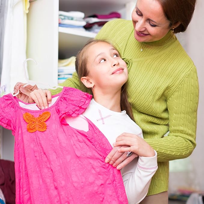 - Package includes 20 plastic hangers for kids' clothes in white color. You can store multiple garments and keep your clothes organized and wrinkle-free.