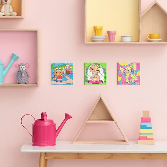 Arteza Kids Fantasy Coloring Kit, 3 Canvases 4 x 4 Inches, 10 Markers, 16 Watercolor Pencils, 1 Paint Brush, 1 Sharpener, Art Set for Kids Activities
