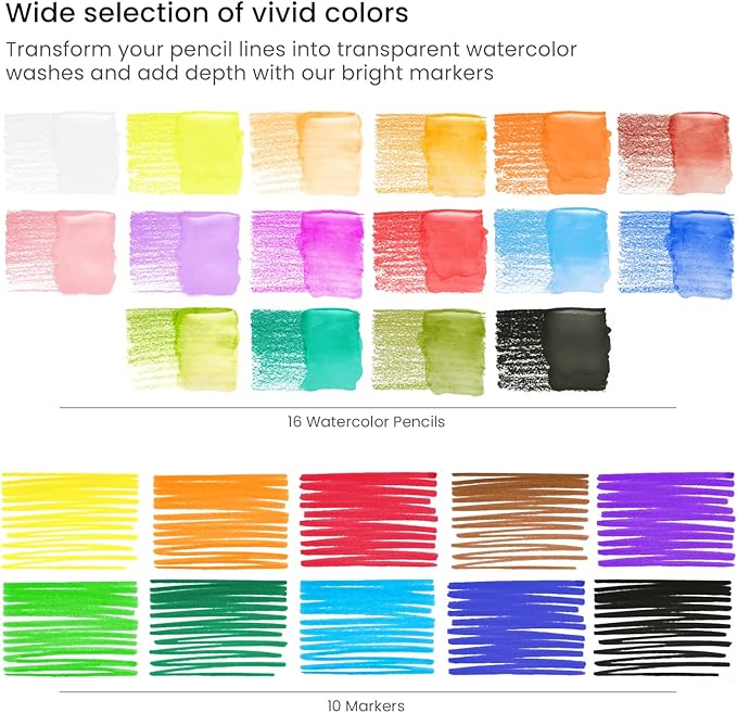 - Colorful Shades of Fun: Our paint markers for kids will keep your little ones engaged during playdates and parties. They'll spend hours using watercolor pencils to sketch, layer, and blend their masterpieces together. The vibrant colors allow for endless combinations and shading effects.