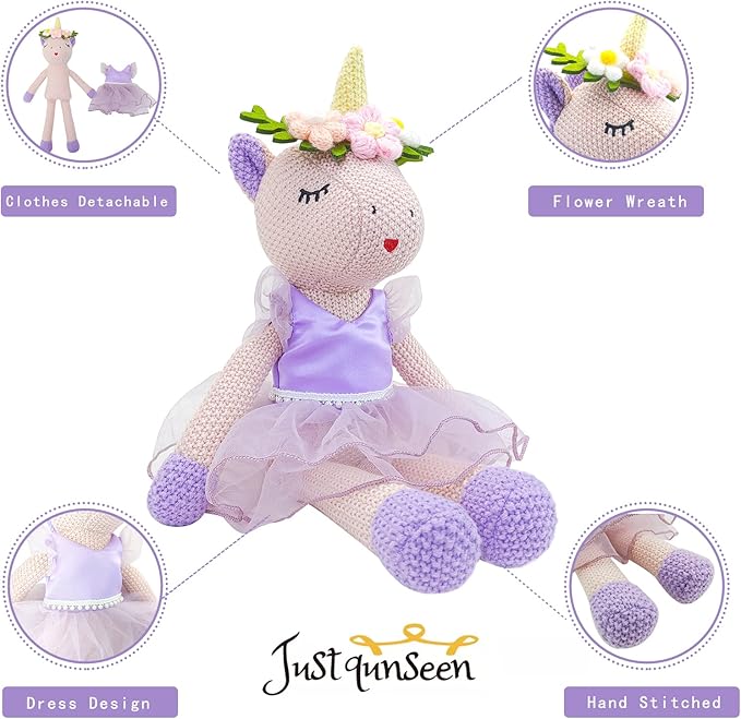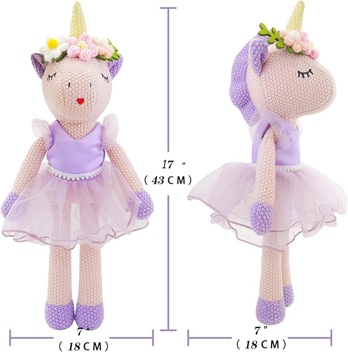 • 【Quality Materials】:This Unicorn Toys for Girls age 4-6 is securely sewn from the highest quality polyester and acrylic fabrics with premium soft plush polyester plush cotton filling. The entire unicorn princess is 100% handmade. It is also made with wool crochet technique,which make it more comfortable.