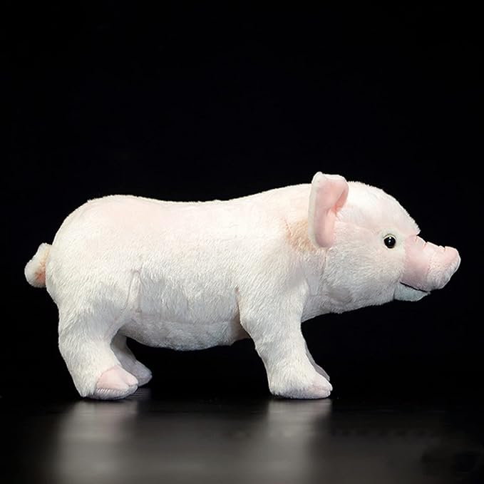 - REALISTIC PINK PIG PLUSH TOY: This is a lifelike pink pig toy, imitates real animals. The adorable face and squeezable body of our pink pig plush are made from premium cloth and filler. its the pink fur is smooth and soft, The light pink back stripe is transparent, standing design, the overall shape design is realistic, and the face design is unique, very realistic.