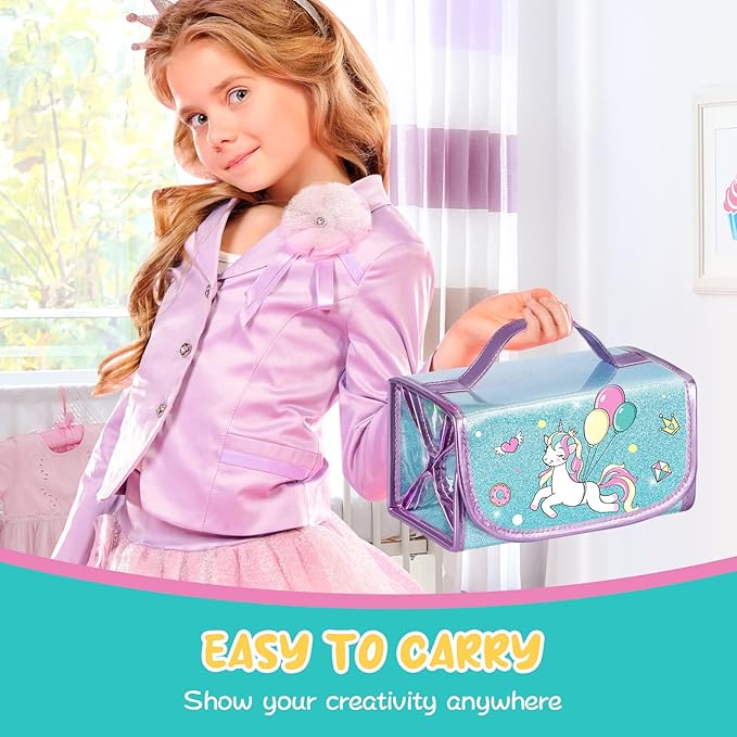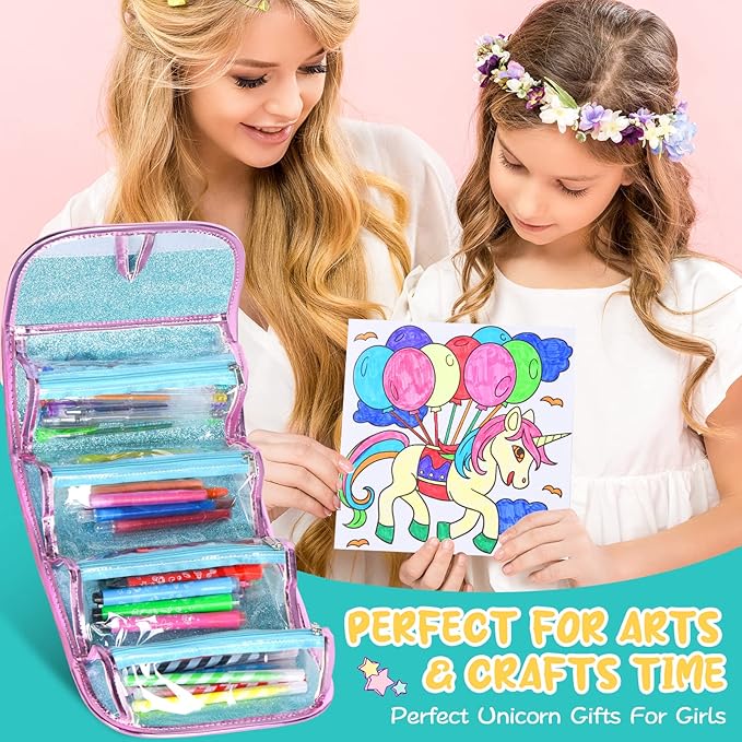 - High Quality Art Supplies: Safe art kits to use for any level of artist. The compact, tidy and portable unicorn case contains four zippered compartments, making it easy for your little girl to keep her pens organized. Keep your little art enthusiast happy and busy. It's perfect girl toy and gift for birthdays, holidays, Christmas, Valentines, Easter and any other special occasion.