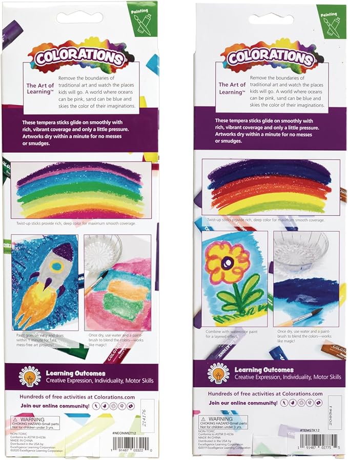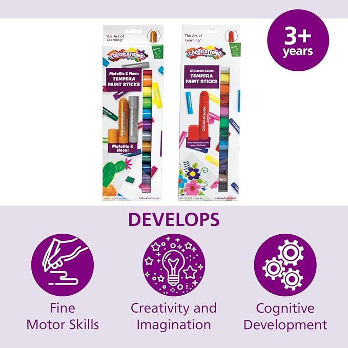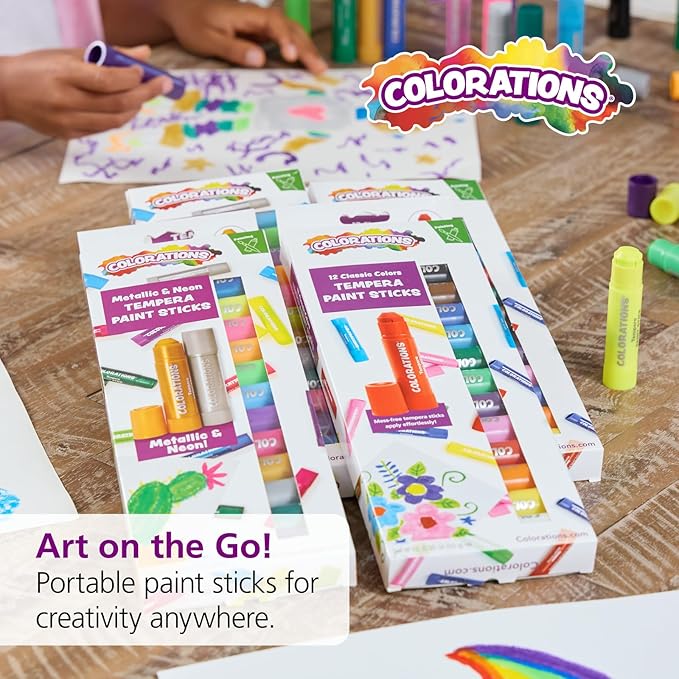 Tempera Paint Sticks, 24 Colors, Silky Smooth Color Application, Classic, Neon & Metallic Colors