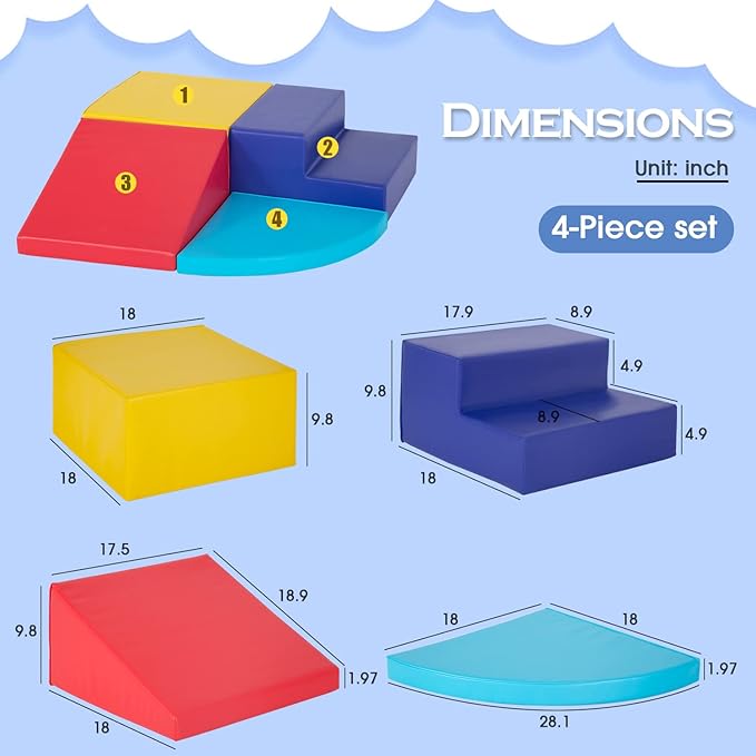 4-Piece Set Climbing Toys for Toddlers 1-3 and Climb Foam Play Set Babies Foam Blocks Toddler Climbing Toys Indoor Baby Climbing Toys Children’s Composite Toy for Crawling Climbing and Sliding