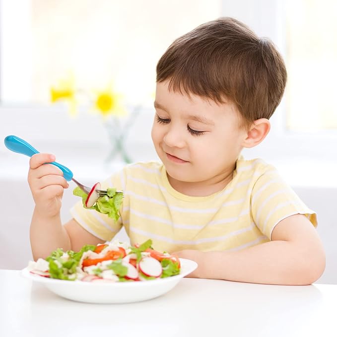 - EXCLUSIVE DESIGN FOR CHILDREN: Ergonomically designed for toddlers to grip in their small hands easily. Rounded forks and spoons without sharp edges won't hurt your little's mouth