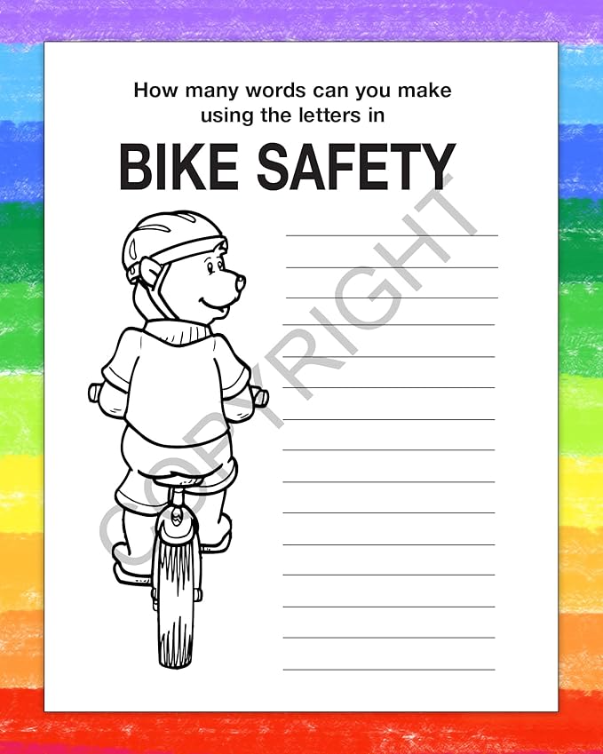 - Riding a bike is great fun and exercise for the whole family, but can be dangerous. The Practice Bicycle Safety coloring and activity book will help teach kids tips on road safety, including proper equipment and clothing. By using helmets, and avoiding cars, kids can fully enjoy hours of two-wheel fun! This product is ideal for bicycle shops and sporting goods stores.