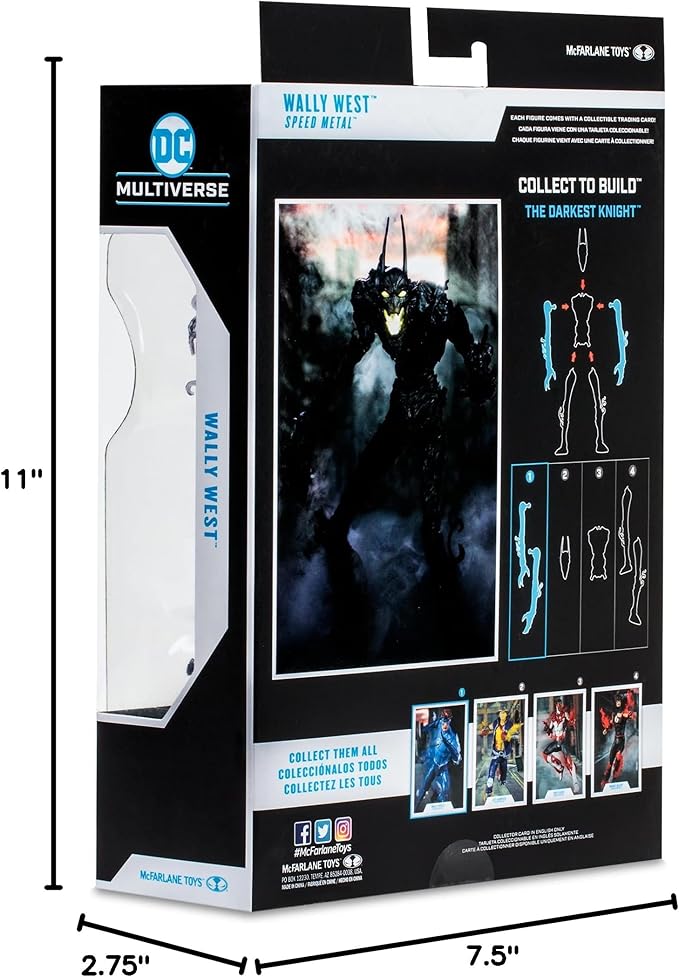 - Wally West comes with 6 attachable speed force lightning pieces, Darkest Knight build-a figure arms and a base
