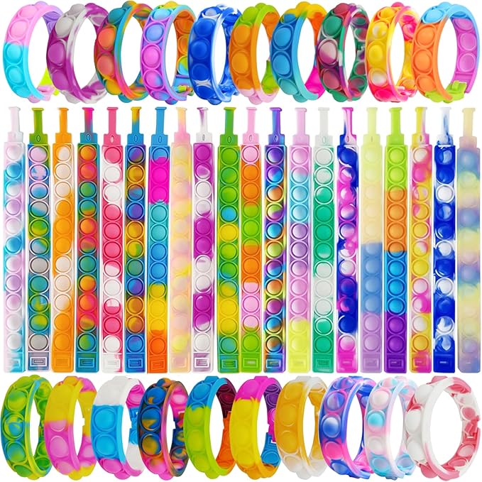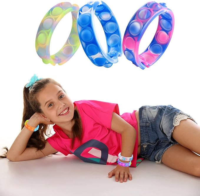 - 【Excellent Stress Reliever】These fidget toy bracelets can effectively relieve anxiety and stress by pressing and the popping sound it makes. ou can squeeze the push bubble fidget bracelet toy or press the soft bubble to make pop sounds on any occasion.