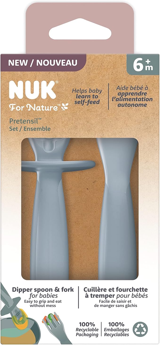 NUK for Nature Pretensil Dipper Spoon and Fork Set, Easy to Grip for Self-Feeding Development, Mess-Free Feeding, Top Rack Dishwasher-Safe, BPA & Latex-Free