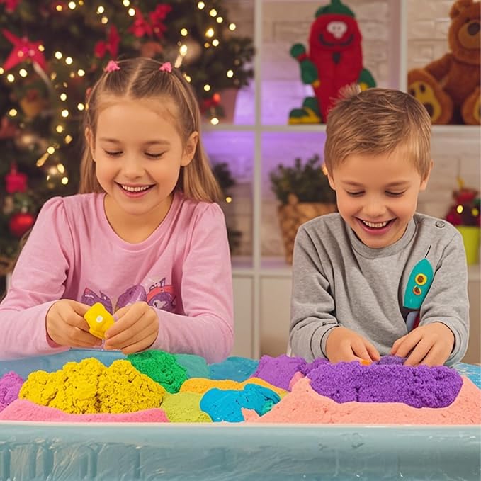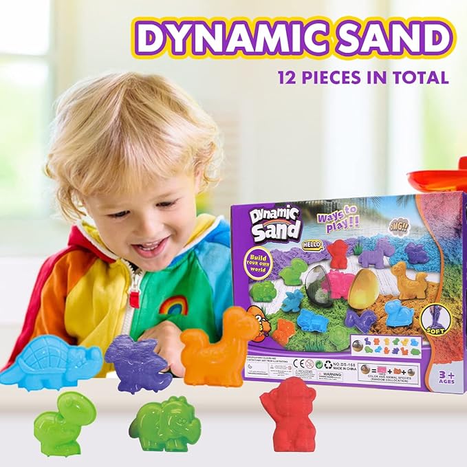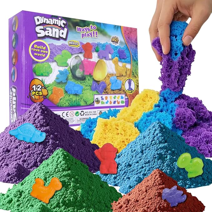 - Play Sand Kit: Creativity magical sand that encourages creativity; Great gift 12-Pack perfect for imaginative play, with a range of vibrant colors; Flows through fingers like slow-moving liquid, but leaves them dry; Perfect for mixing, molding, squishing, cutting and much more