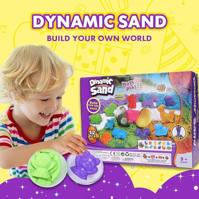 - Multi-Color Play Sand: Includes 12 pack of egg play sand, each pack is about 3.5 ounces, and there is also an animal molding tools, suitable for parties, Easter, combine the colors to make one-of-a-kind creations