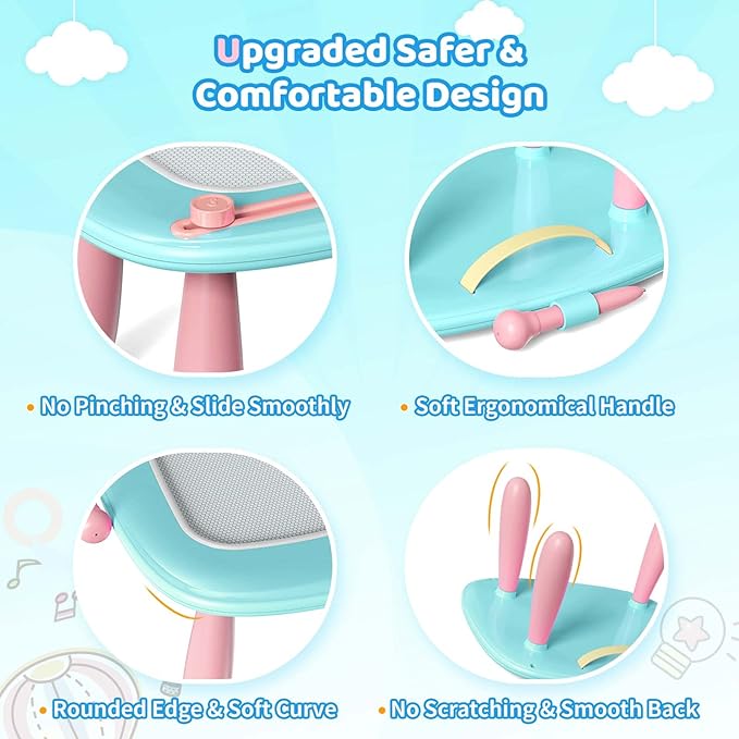 - Sturdy Drawing Table or Doodle Board: Designed with a durable screw-on system and premium legs, this drawing board is built to handle heavy use without a hint of wobbling or risk of breakage. Plus, the table’s legs are easily detachable and adjustable in three different heights, offering the perfect fit for your little artist’s comfort. Let their creativity flow with a stable, flexible setup that grows with them—ideal for endless hours of drawing fun!
