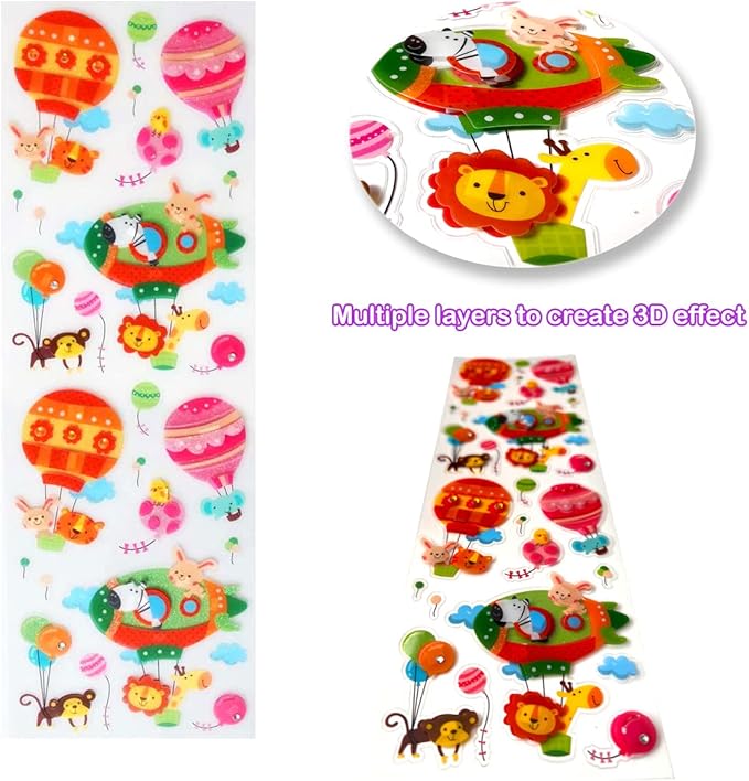 - Bonus 3D Air Hot Balloon Stickers. one Sheet, not a ordinary stickers. Multiple layers create stunning 3D visual effect. Great additonal for Hello Kitty theme coloring and craft activities
