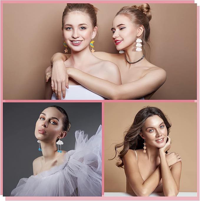 - Assorted Sizes to Choose: our clay earring cutters come in various sizes, the cloud shaped cutters come in 3 sizes, the star, moon, bolt and rain drop shape (2 pieces for each shape) come in 2 sizes for you to choose from, allowing you to arrange sizes according to your own needs