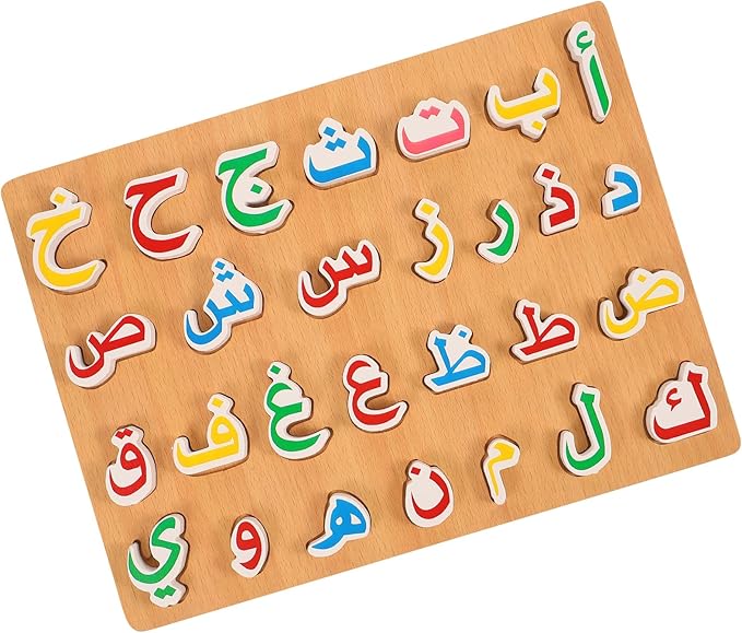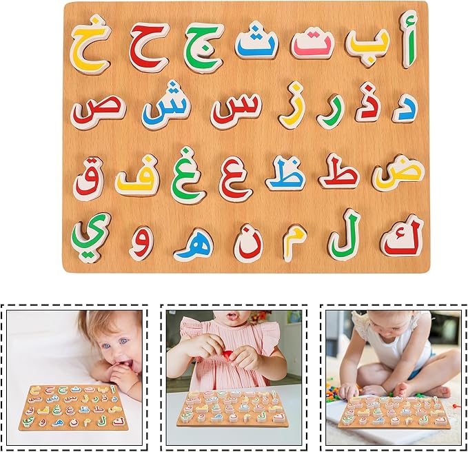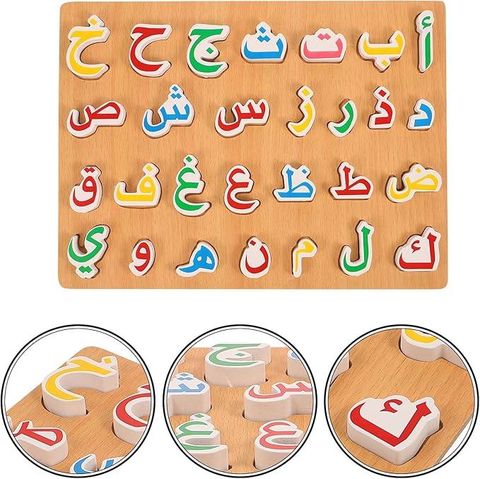 1 Set Wooden Arabic Alphabet Puzzle Childrens Montessori Preschool Education Hand Grip Puzzle Game for Kids Wooden Toys Educational Arabic Learning for Kids