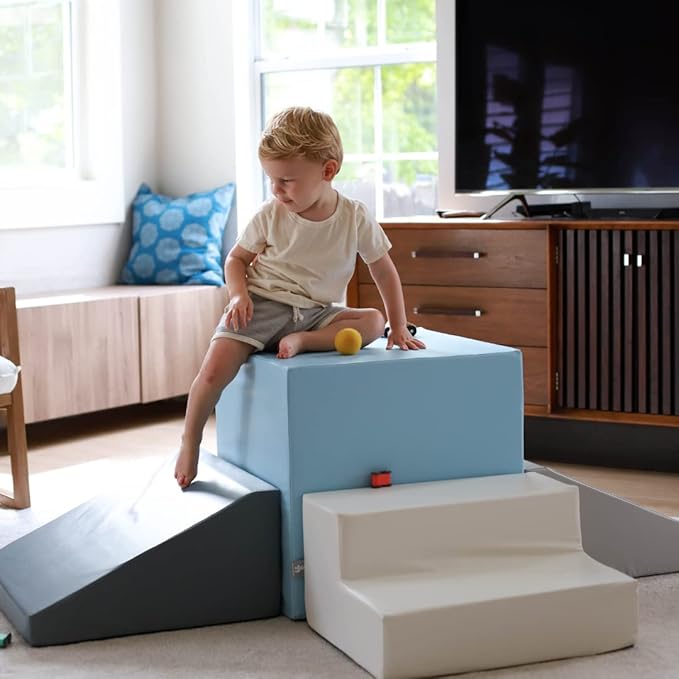 Foamnasium Gymnasium, Indoor Foam Playset, 4 Piece Soft Toddler and Active Kids Play Foam Climber for Crawling, Climbing, Sliding and Jumping, Made in The US, Enhanced Navy Multi