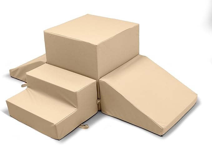 Foamnasium Gymnasium, Indoor Foam Playset, 4 Piece Soft Toddler and Active Kids Play Foam Climber for Crawling, Climbing, Sliding and Jumping, Made in The US, Enhanced Camel