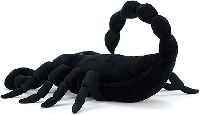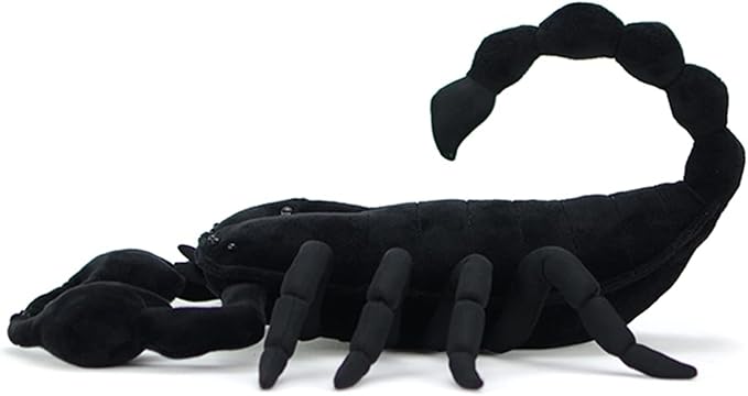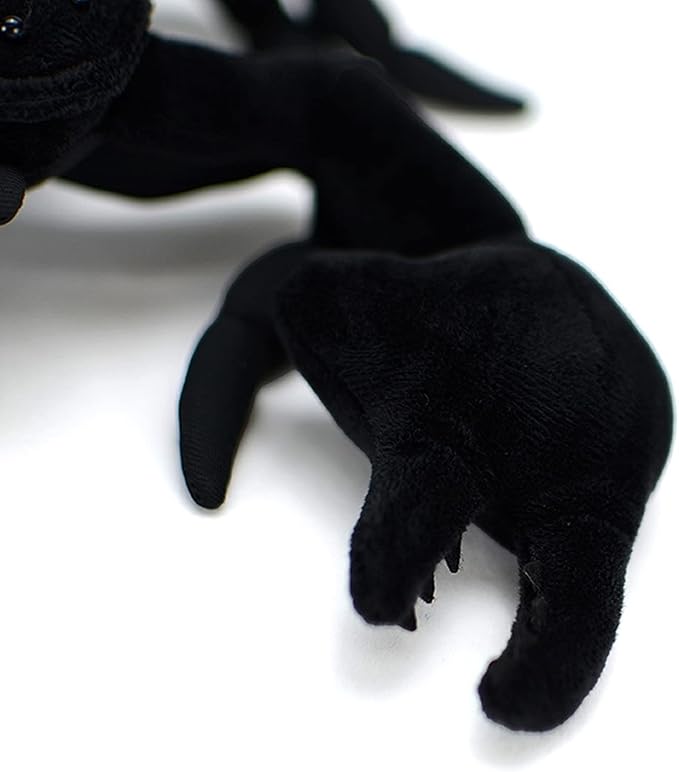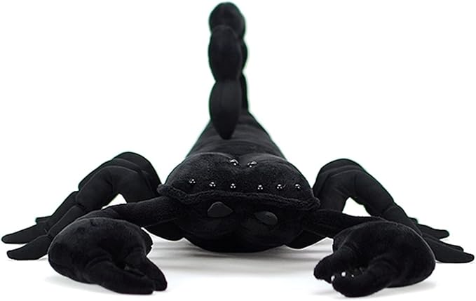- REALISTIC PLUSH TOY: This is a lifelike emperor scorpion model toy, the details are realistic. The adorable face and squeezable body of our scorpion plush are made from premium cloth and filler. its black fur is smooth and soft, black color eyes and realistic mouth design, thick shell and claws, the overall shape design is realistic, and the face design is unique, very realistic.
