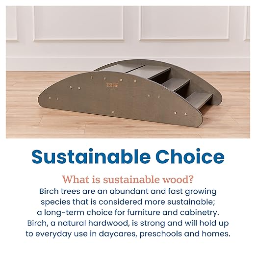 - Two-Sided Play: Engage in active play on the teeter-totter with a center dowel for little hands to hold providing additional security; turn it over to practice motor skills on the six sturdy stairs