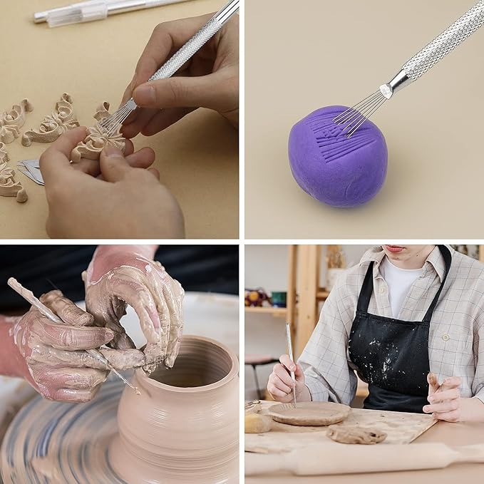 - Useful Need Tools: Necessary for etching, trimming, cutting, incising, scoring, and piercing clay, a needle tool is a must-have for any ceramicist—professional or recreational, beginner or advanced. And wire texture tool can be used for handing special textures, such as animal hair