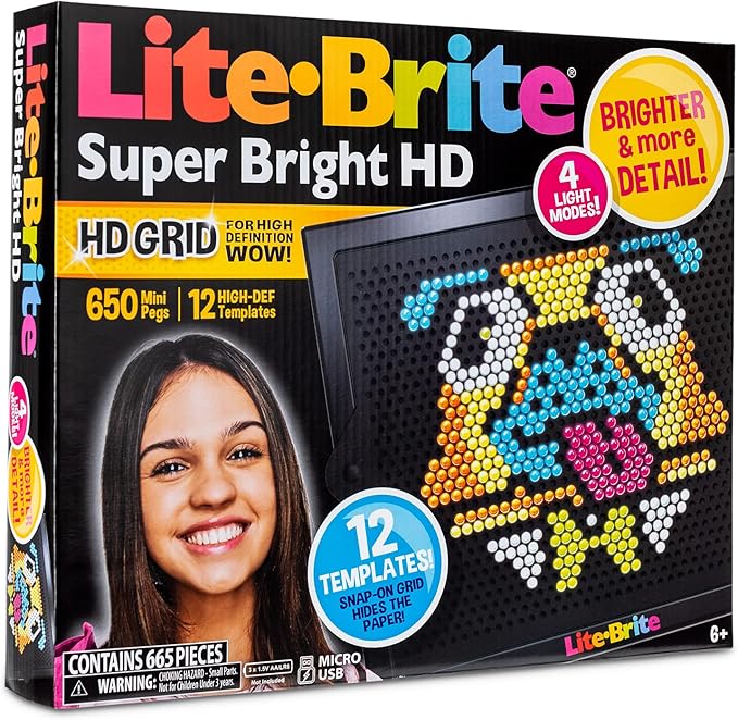 Lite Brite Super Bright HD - Creative Retro Light-Up Screen – Educational Play for Children – Enhances Creativity & Fine Motor Skills, Gift for Boys and Girls Ages 6+