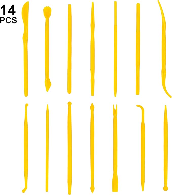 14 Pieces Clay Modeling Tool Kit Plastic Reusable Double-Sided Ceramic Pottery Tools for Shaping and Sculpting Clay Decorating Sticks Supplies Kit for Beginners Kids Adults
