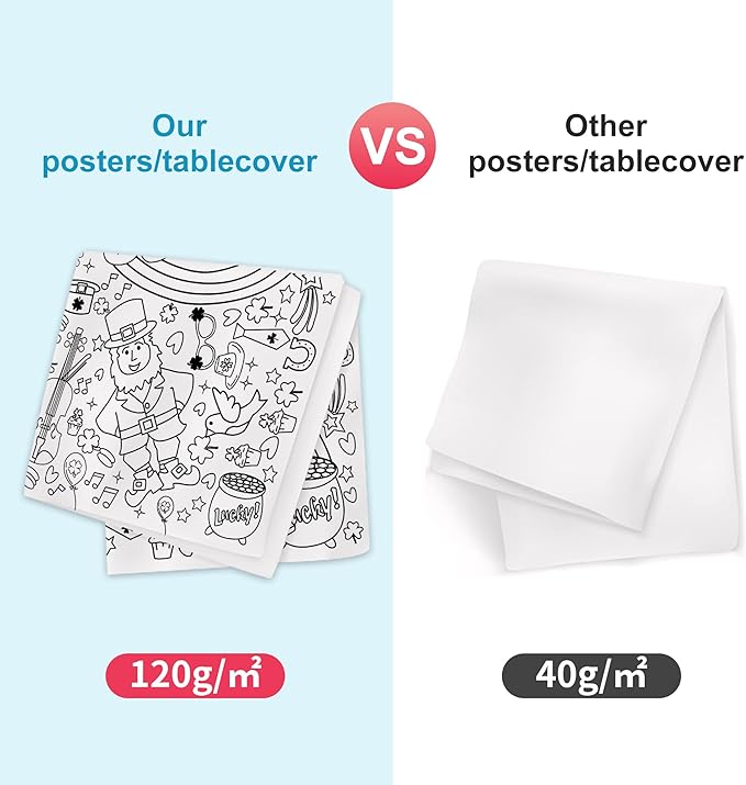 - [Reliable to Use]: Coloring posters for kids:32*72 inch.This St. Patricks activity tablecloth is made of thick paper, which is reliable, clearly printed, and not easy to break, tear off, or fade, providing you with a pleasant using experience.