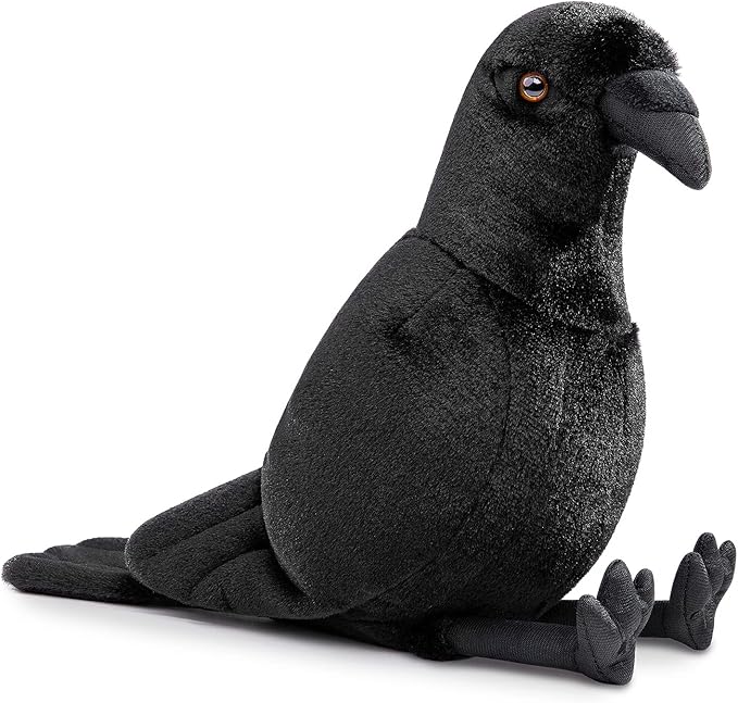 - REALISTIC CROW PLUSH TOY: This is a lifelike black crow toy, imitates real animals. The adorable face and squeezable body of our crow plush are made from premium cloth and filler. its the black fur is smooth and soft, the overall shape design is realistic, and the face design is unique, very realistic.