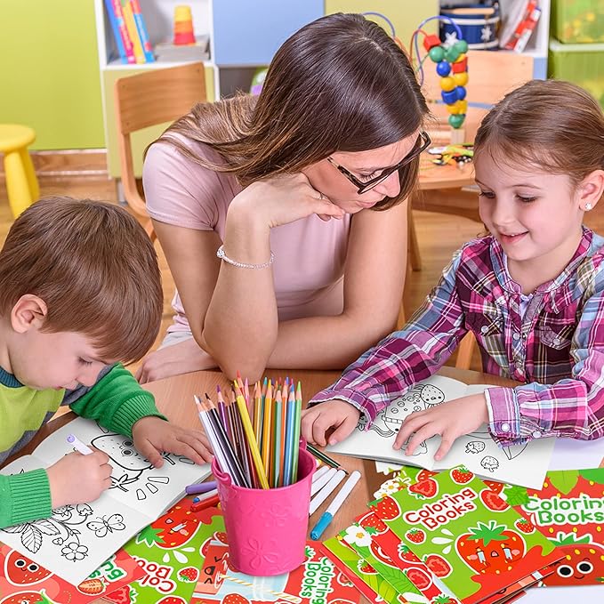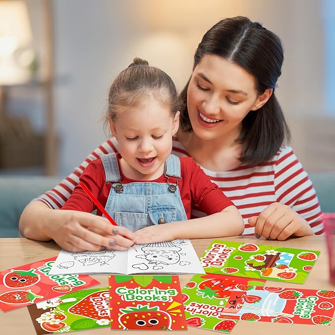 - What You Will Get: Receive a delightful package of 24 strawberry coloring books, featuring 6 different cover patterns with 4pcs of each design. Each book contains identical patterns, ensuring endless coloring fun for kids and adults alike.