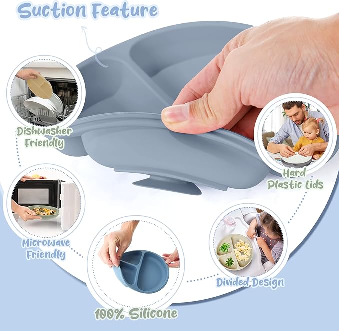 - Reliable Material: these silicone baby plates are made of quality, soft silicone, BPA and PVC free; Unbreakable silicone is the ideal material for toddler tableware; They are odorless and stain resistant; In addition, silicone is dishwasher, microwave and oven safe, just remove the lids and reheat them quickly in the microwave, then toss them in the dishwasher for a quick and easy cleanup