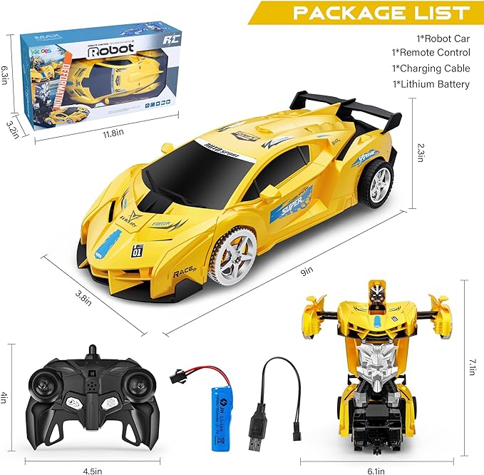 - Perfect Hobby Gift for Kids - Designed for transformer lovers and all kids who love cars, this RC car toy can be used as the best gift choice for Christmas or Birthday. The Rc cars is a perfect toy for boys and girls, keep children busy and fascinated with the transformation, being a hit on the birthday and other holiday parties.