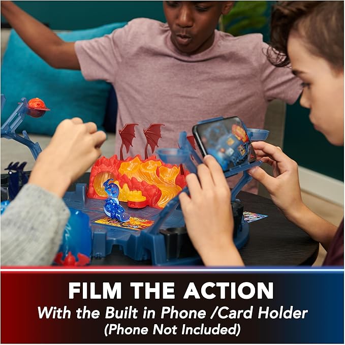 - CUSTOMIZABLE BATTLE ARENA: Slide, spin, and strike your spin attack Bakugan on this ultimate playset. Film and store your Bakugan during the action with the built in phone holder. This set includes 1 Special Attack (Spinning) Bakugan and 2 Core Bakugan balls.