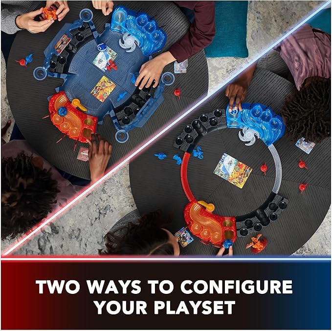 - 2-IN-1 PLAYSET: Transform your Battle Arena into two configurations to match your battling needs. Use the Wall Pieces with the Training Sets for a circular battling space, perfect for Special Attack Bakugan. Use the 6 totem and spinners as obstacles to change up the gameplay.