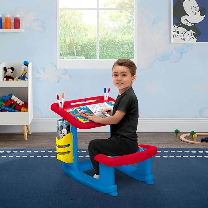 - FOR MICKEY MOUSE FANS: Colorful Mickey Mouse graphics and coloring pages makes this a must-have desk for any Mickey Mouse fan