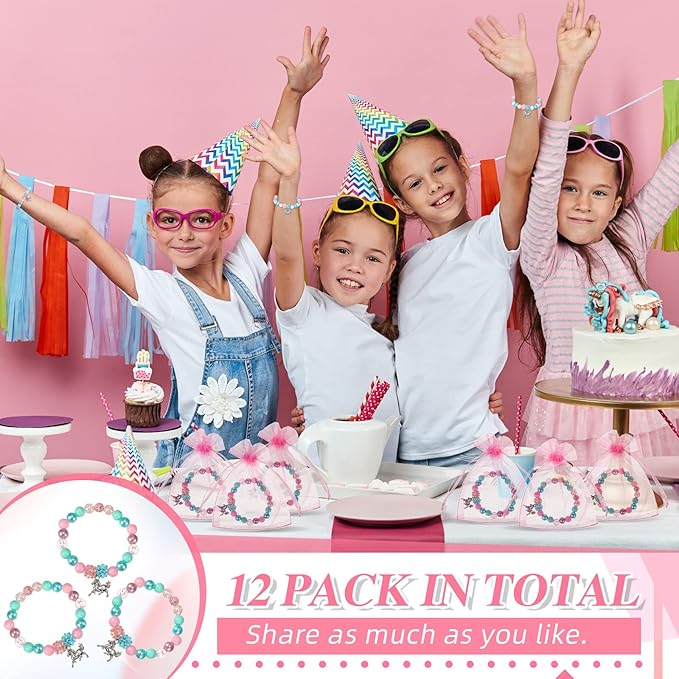 - Sweet Gift Set: you will receive 12 horse pastel kids bracelet for girls and 12 pink drawstring yarn bags, an ideal gift choice for girls aged 3-6 years, or a nice gift for a birthday party