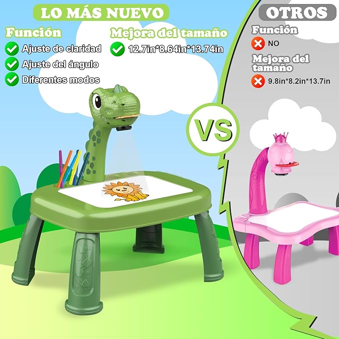 - Product Size Upgrade - This drawing table is larger than the old model, suitable for children to play. Your child no longer has to curl up while using it.P.S. It has a switch with 3 positions. When the switch is moved to the middle, the sound can be turned off and only the pattern is projected.