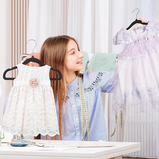 - Perfect Size: The position and depth of the grooves on both sides of the 11.6" toddler velvet hangers perfectly match the size of your child's clothes