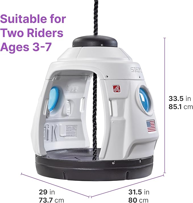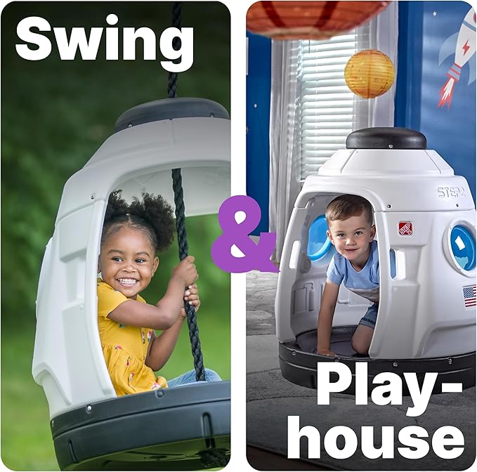 Step2 Space Capsule Swing, Kids Indoor/Outdoor Swing or Playhouse, Backyard Playground Set, Attach to Playset or Tree, for Children 3-8 Years Old