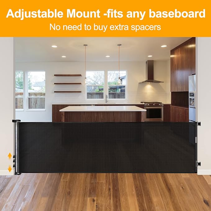 - Retractable Gate:the mesh of the retractable baby gate is retractable, so you can roll up the mesh when you are not using the gate, saving you space.