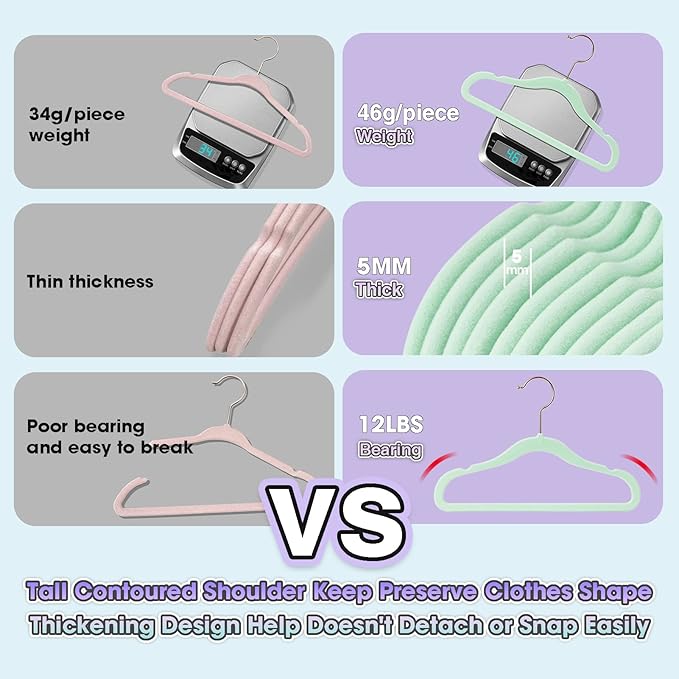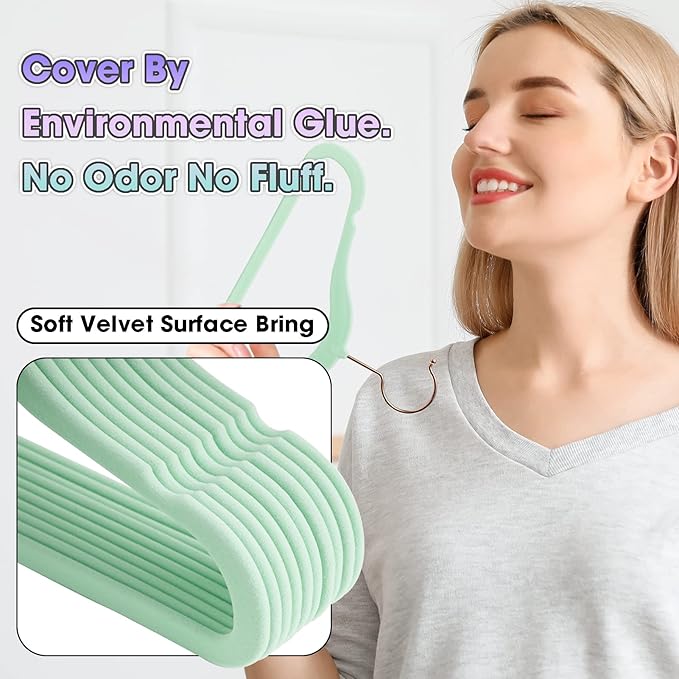 - Non Slip Velvet Fabric!Our baby hangers cover with non-toxic non-fading fabric which is safe for baby using.Luxurious flocked velvet prevent clothes from slipping off.2 shoulder notches on both sides could grip delicate items such as camisoles, skirts and dresses.