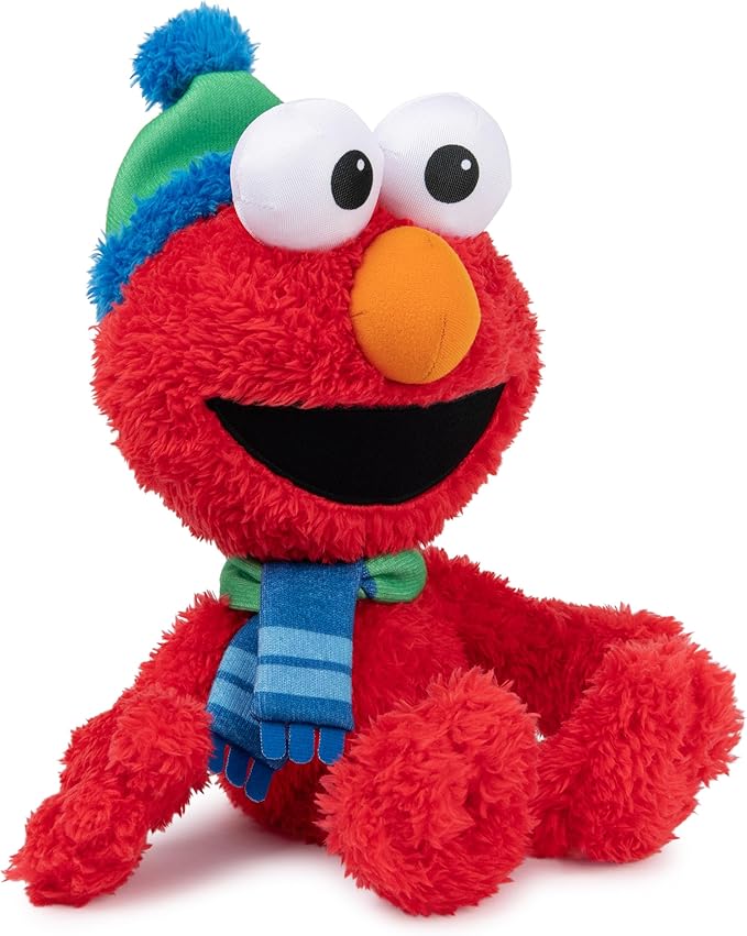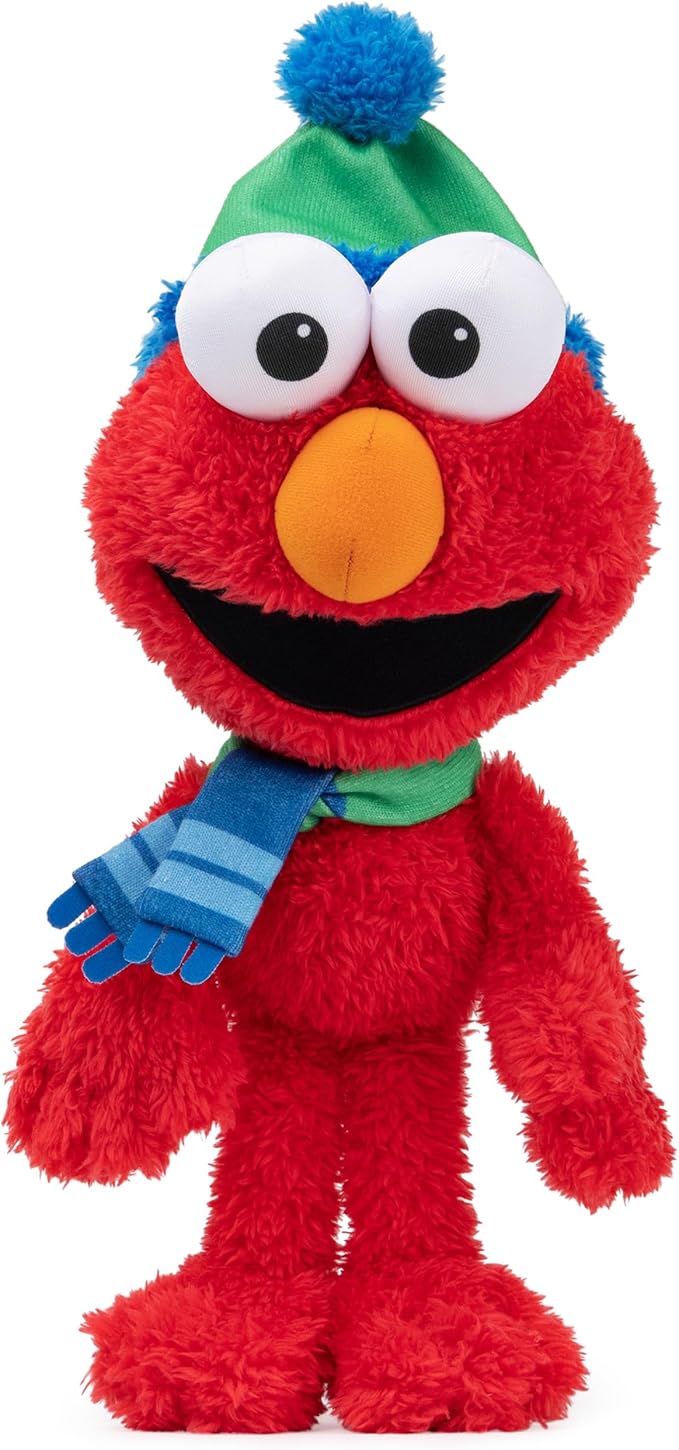 - NUTCRACKER ELMO PLUSH: This soft 13” plush features Elmo from the Nutcracker Sesame Street holiday special, with a blue-and-green scarf, matching pompom hat, and whimsical oversized head. His playfully floppy limbs are perfect for on-the-go play