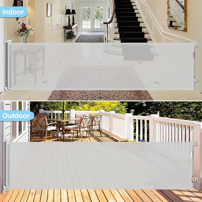 - [Perfect Fit Indoor and Outdoor] retractable dog gate can be installed at bottom of stairways, doorways, hallways, deck, porch indoor and outdoor.