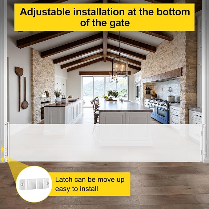 - [Easy to Use with One Hand]The extra long retractable pet gate is designed with a double locking system. Adults can easily lock and unlock the child gates, but children cannot.