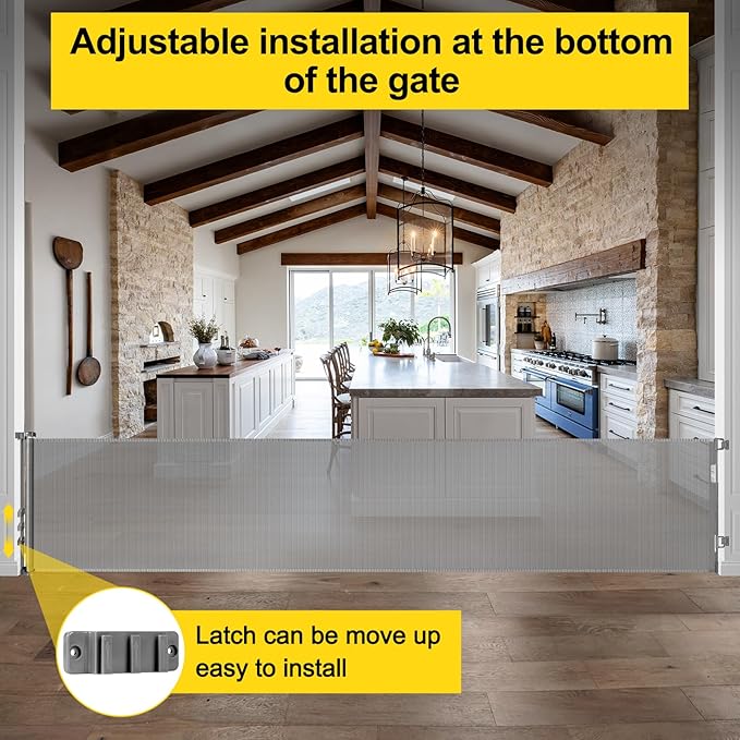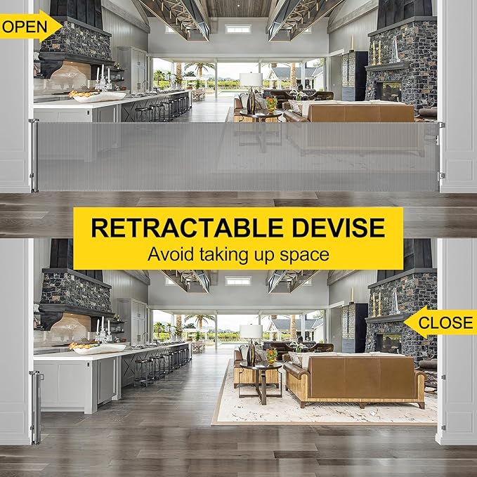 - [Easy to Use with One Hand]The extra long retractable baby gate is designed with a double locking system. Adults can easily lock and unlock the mesh gates, but children cannot.